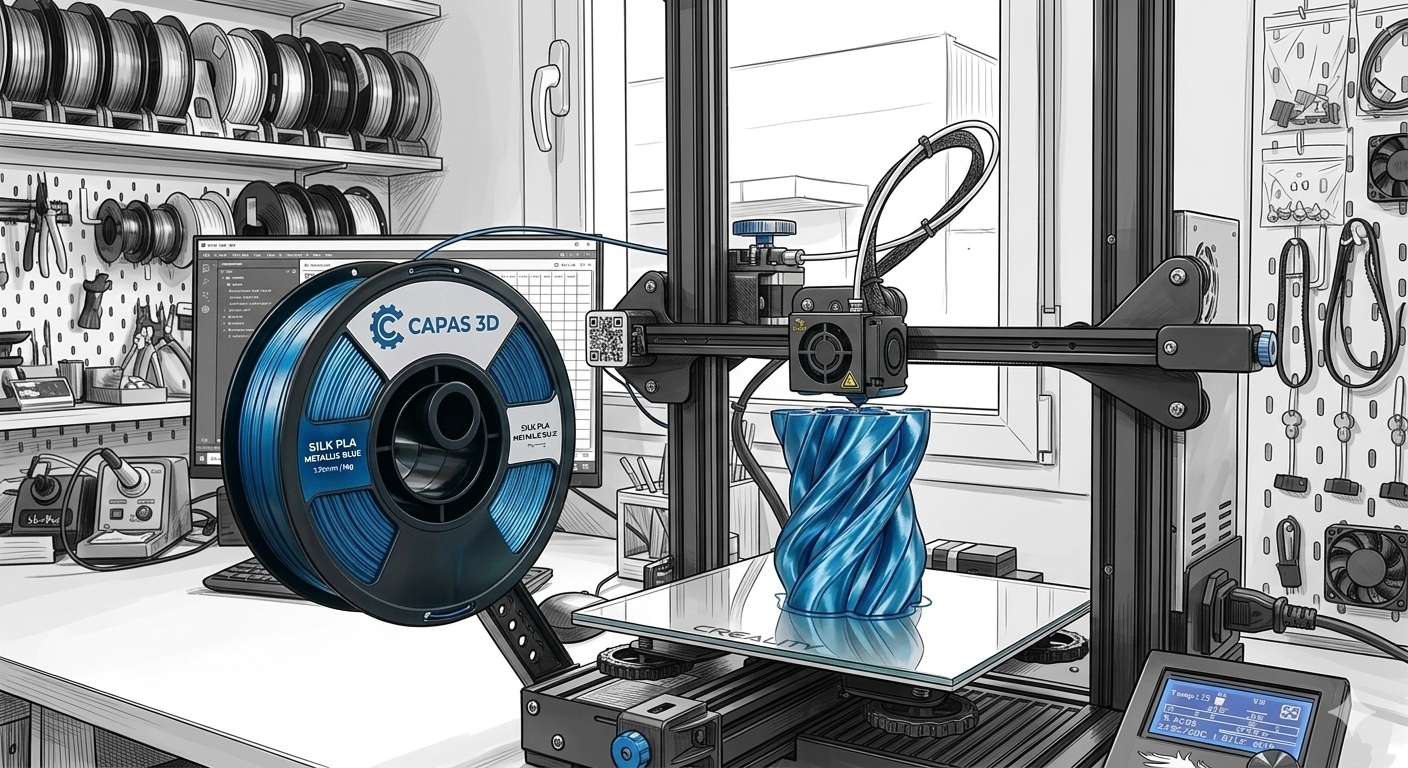 Elegir un buen filamento es la inversión más barata que puedes hacer para ahorrar en frustraciones. En Capas3D solo trabajamos con los materiales que nosotros mismos cargamos en nuestras máquinas a diario.